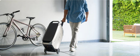 Portable design for an ideal lifestyle. Boosts portability with its wide wheels, ergonomic handle, and compact design. Its magnetic sliding doors simplify access, optimising space and power for mobility without compromise. Ideal for dynamic lifestyles and maximising family space.