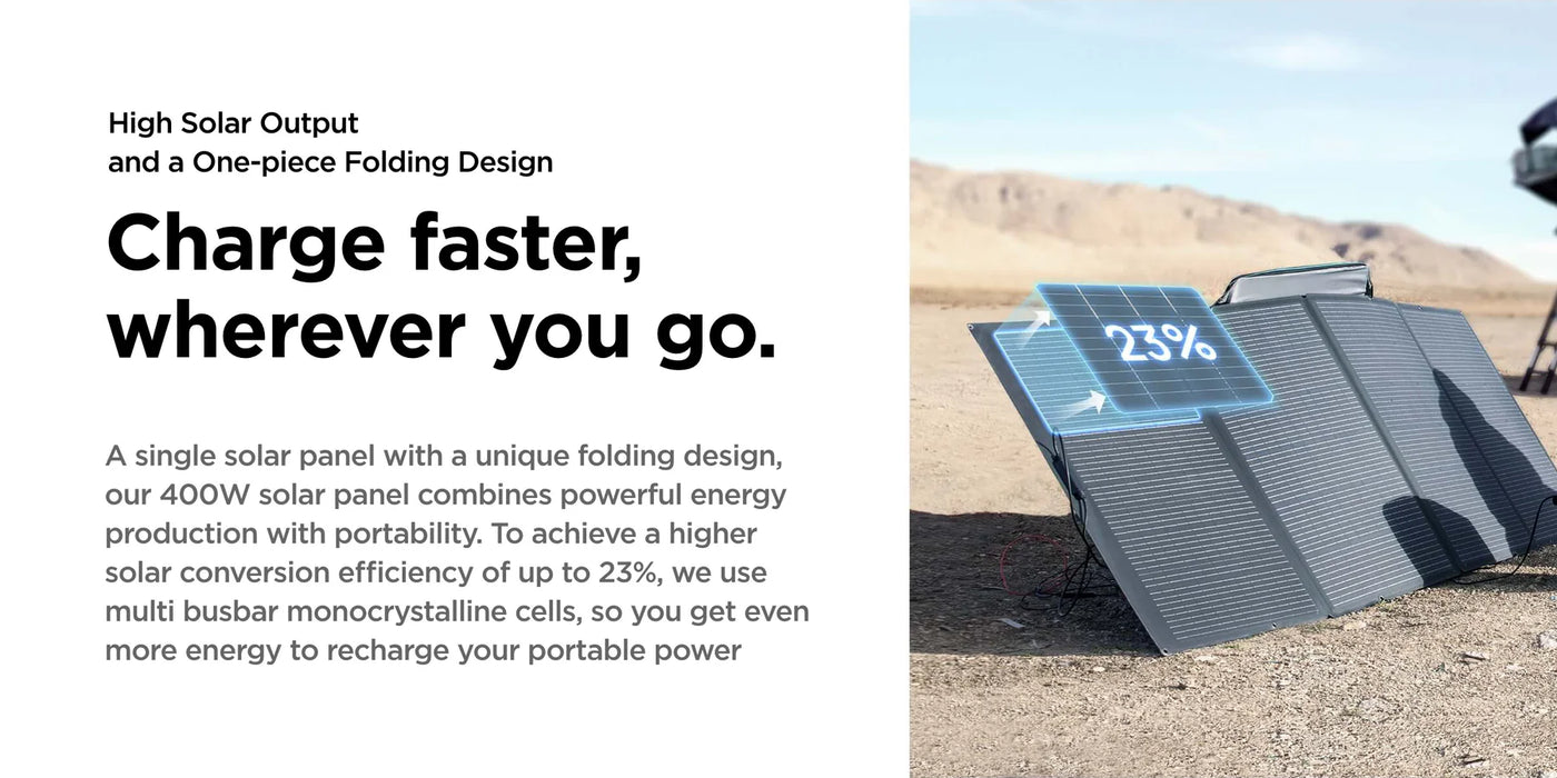 • Powerful 400W solar output for fast energy harvesting