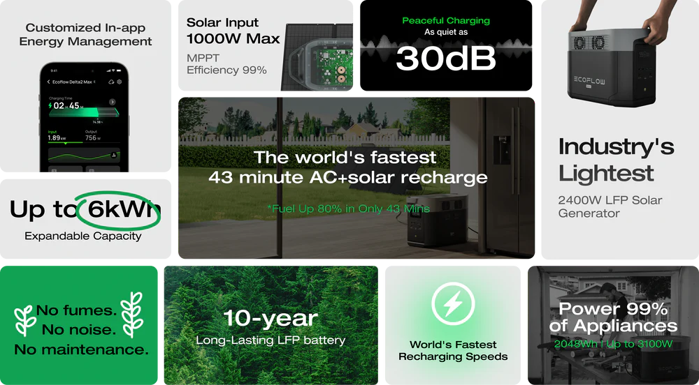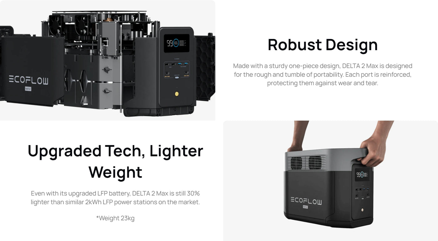 - Expandable capacity: 2-6kWh expandable capacity to fit your energy storage needs. Add up to two DELTA 2 Max Smart Extra Batteries to hit 6144Wh. Ideal for home backup, caravanning, outdoors or even everyday use.