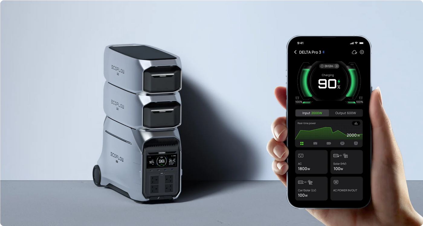 The Smart Extra Battery connects effortlessly to your DELTA Pro 3 with a true plug-and-play setup. Its compact, stackable design makes it easy to manage power at home or on the go.